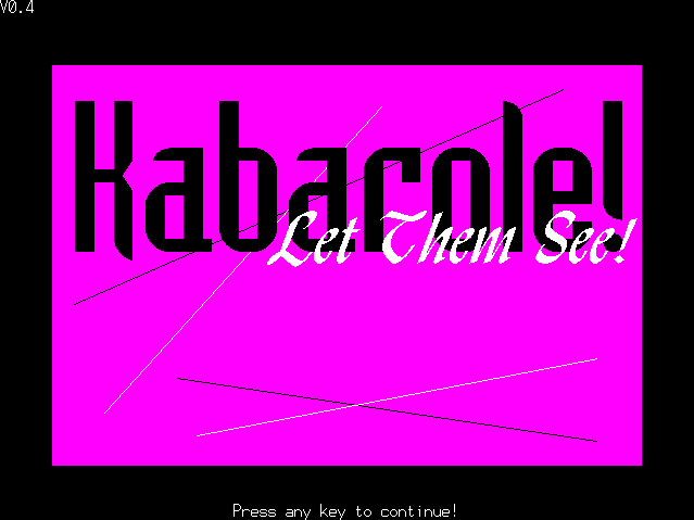 3. Enter "KABAROLE.BAT" at the DOS prompt. This will start the program. Don't type simply