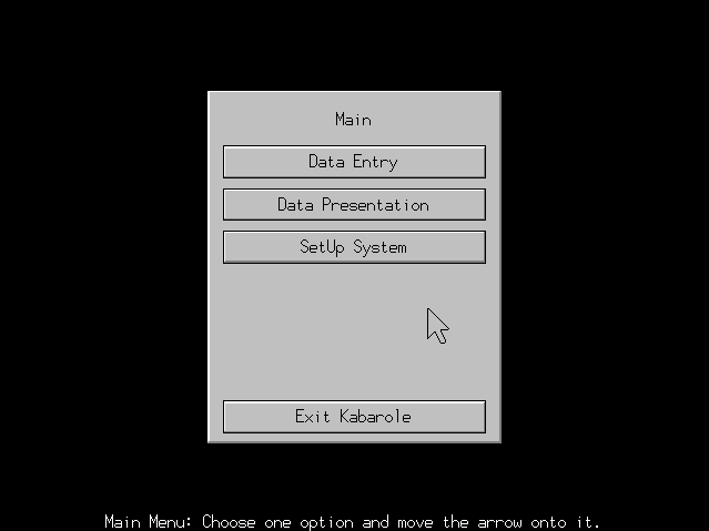 - Choose "Exit Kabarole", when you want to leave the program. Instead of choosing this option, you can also press the <Esc> key on the keyboard. At this point there is no danger of loosing data due