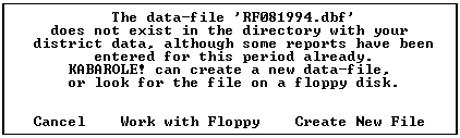 Fig. 3.1-9: This message will appear on the screen, when "Kabarole!" cannot find the data file for the demanded period, although it should exist already.