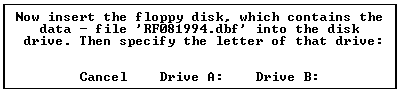 Fig. 3.1-10: This message will appear on the screen, after the option "Work with Floppy" was chosen in the message from figure 3.1-9.