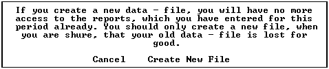 you do this, you will not be able to use the data from your original data file again. To create a new file means to start the reporting period afresh. Therefore you should only use this option, when you are very