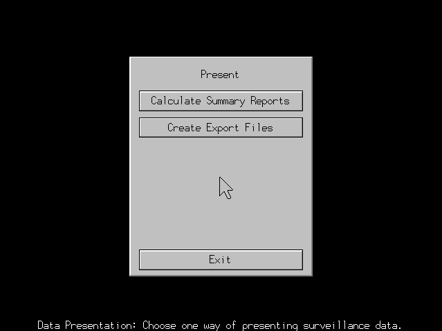 14. Press <Esc> to leave the screen "Settings for Calculating a Summary Report". "Kabarole!" will return to the "Present Menu" (compare figure 4.1-1).