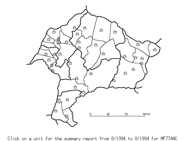 Summary Report" (compare figure 4.1-2), the district map appears on the screen (compare figure 4.1-7). From this map you can select the health unit, for which you want to summarize reports. Of course this map