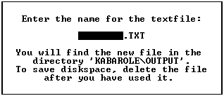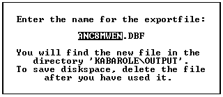 15. Choose "Create Export File" from the "Options" box. "Kabarole!" will ask for the name of the export file (compare figure 4.1-21)