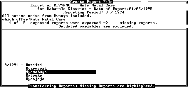 18. Press <Esc> to leave the district map. "Kabarole!" will return to the screen "Settings for Creating a DBaseIII Compatible Export File" (compare figure 4.1-16).